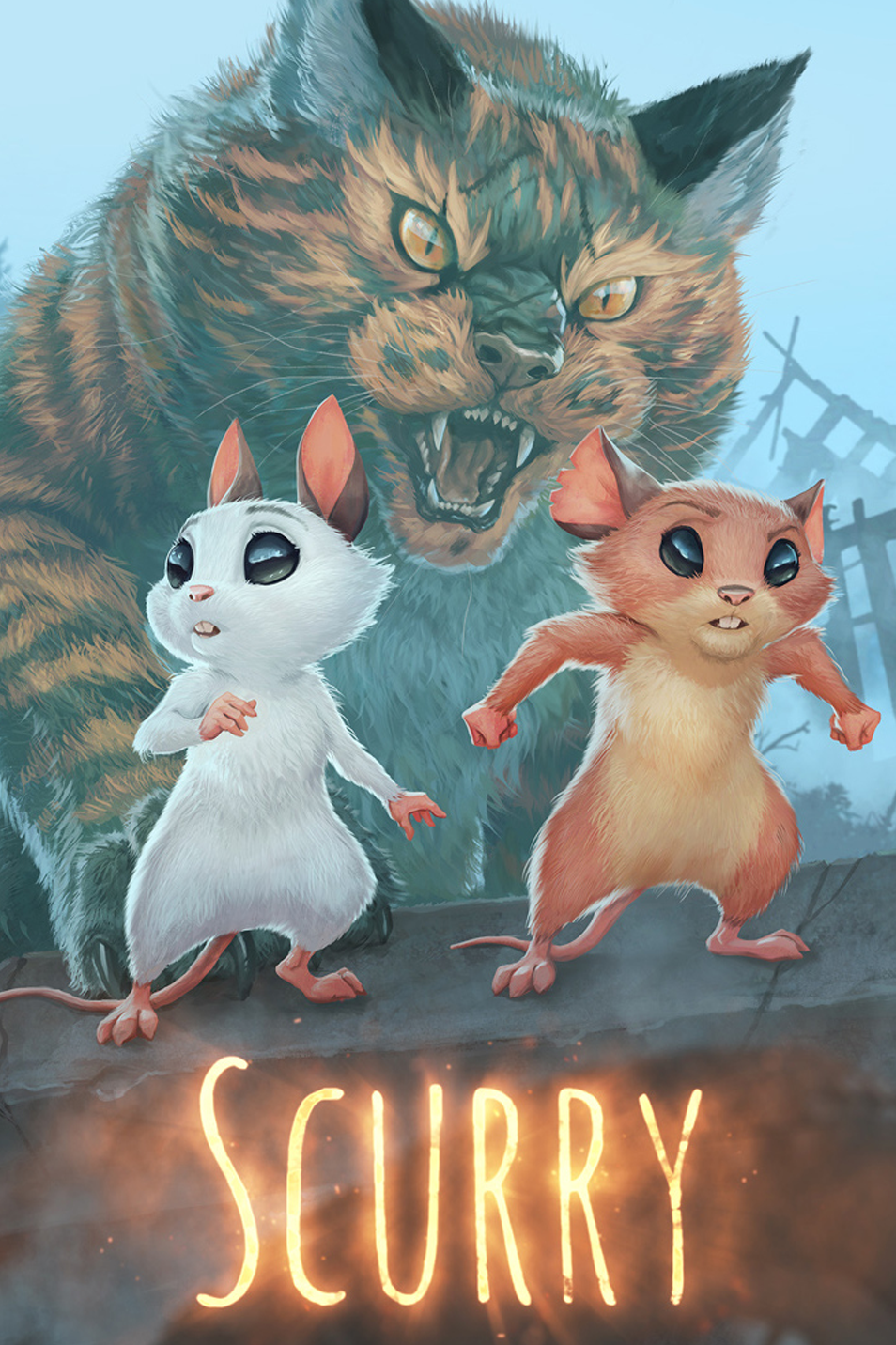 Scurry is the story of a colony of mice in an abandoned house who are struggling to survive a long, strange winter. The humans are all gone and the sun is rarely seen. As food becomes scarce and many mice fall ill, the scavengers are forced to search farther from their home, braving monster infested lands in search of anything that will help the colony survive another day. Being hunted by feral cats and predatory birds is part of life for these mice, but beyond the fences stalks something far more fearsome...
